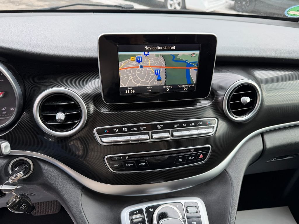 Mercedes V 220d, Aktuelle Laufleistung: 213.373 km, Letzter Service am 19.03.2025 bei 180.475 km, 3. Hand, Umweltplakette: Grün, Euro 6, Polster: Stoff, Navigationssystem, Klimaautomatik, Spurhalteassistent, Außenspiegel mit Totwinkel-Assistent, Leichtmetallfelgen 17“ mit Winterreifen, Tempomat, Rückfahrkamera, Einparkhilfe vorn und hinten, Sitzheizung vorn, Sport-Paket Exterieur, Außenspiegel elektrisch anklappbar, Innenspiegel und Außenspiegel links mit Abblendautomatik, Licht