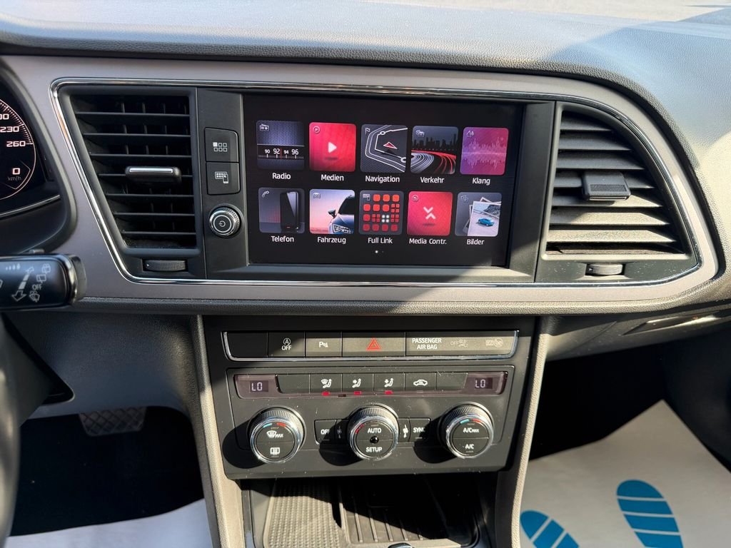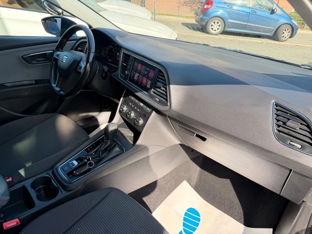 Seat Leon 1.6 TDI, Aktuelle Laufleistung: 111.031 km, Letzter Service: NEU, Scheckheftgepflegt, TÜV: 06.2026, 3. Hand, Umweltplakette: Grün, Euro 6, Gepflegt, Polster: Stoff, Audio-Navigationssystem mit Touch-Display, Klimaanlage, Spurhalteassistent, Verkehrszeichenerkennung, Leichtmetallfelgen, Kombiinstrument digital (virtual cockpit), Einparkhilfe vorn und hinten, Apple CarPlay & Android Auto, Lichtsensor, Tempomat, Freisprecheinrichtung Bluetooth, Induktionsladeschale für Smartphone, Lendenwirbelstütze Sitz vorn links, verstellbar, Radioempfang digital, Startanlage Keyless Access, Innenspiegel mit Abblendautomatik, Sprachsteuerungs-System, Lederlenkrad mit Multifunktion, Seitenscheiben hinten und Heckscheibe abgedunkelt, Nebelscheinwerfer mit Abbiegelicht, Reifendruckkontrolle, Tagfahrlicht LED, Fensterheber elektrisch vorn und hinten, Start/Stop-Anlage, Dachreling, Mittelarmlehne vorn und hinten, Zentralverriegelung mit Funkfernbedienung